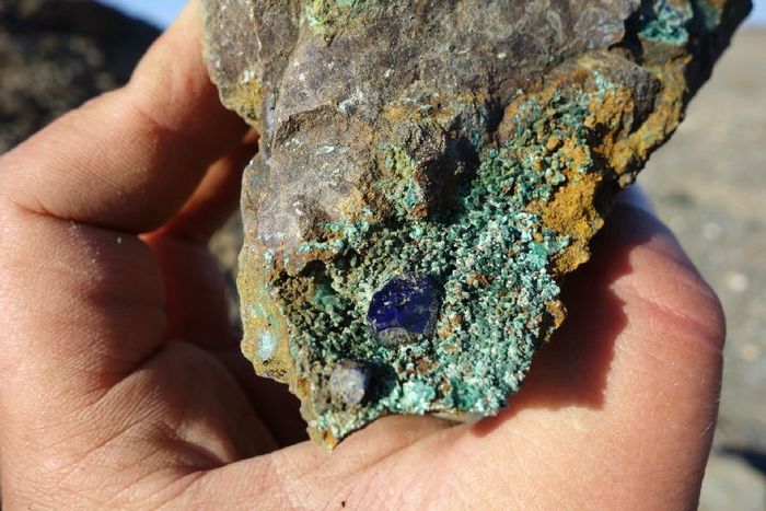 Азурит изредка применяют как недорогой поделочный камень, но его хрупкость, невысокая твёрдость и относительная нестойкость цвета ограничивают использование камня.Самые большие кристаллы азурита добываются в Цумебе (Намибия), Катанге (Демократическая Республика Конго) и Туиссите (Марокко). Известны месторождения азурита на Алтае (Россия).