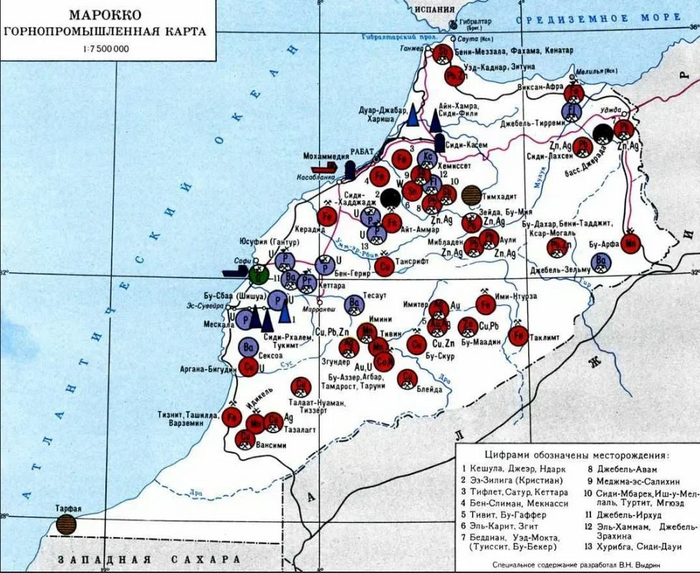 На территории Марокко выявлено 12 нефтяных и 5 газовых месторождений, но все месторождения по запасам незначительны и большая часть их уже выработана. Поэтому какую-то часть СПГ Марокко приобретала даже у России. (Вообще-то это даже немного странно, при наличии такого богатого газом соседа, как Алжир 🤔 Может мы так с ними за апельсины рассчитывались?). Но не будем углубляться в недра политики, свои газ и нефть у Марокко всё же есть, и это тоже отражено на одной из банкнот 1970 года.