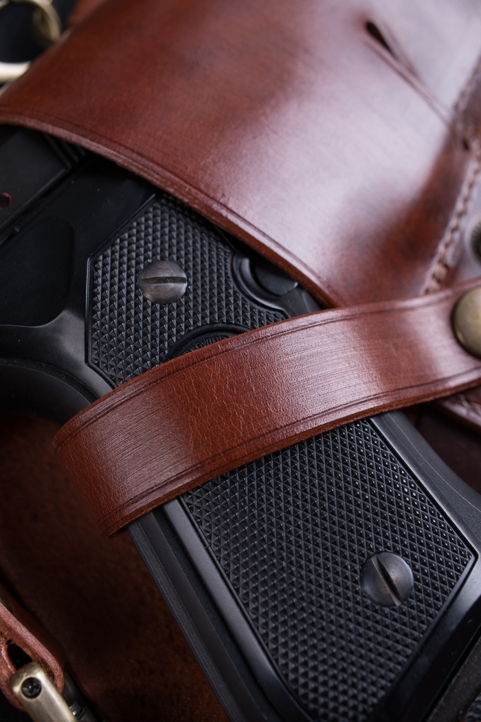 Маркировки фирмы имеются на щечках рукояти и на рамке под флажком для разборки.