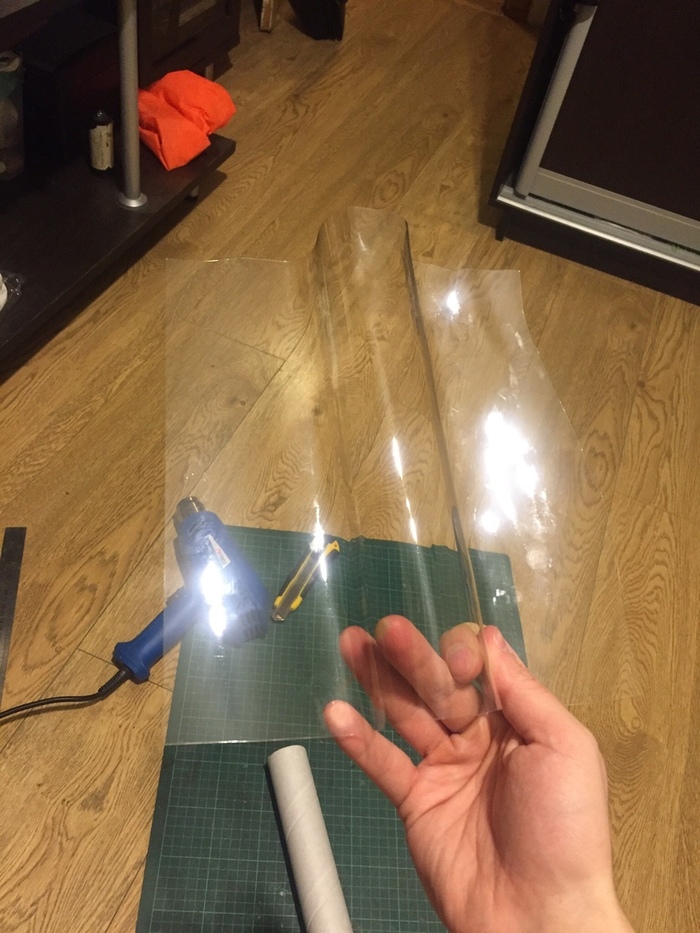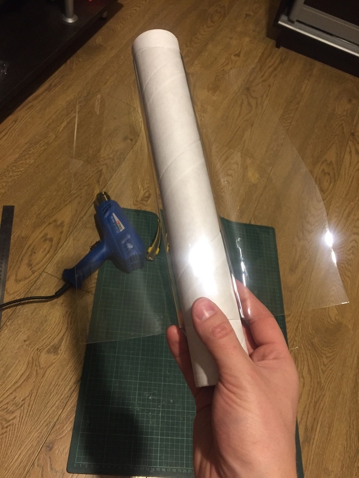 Для создания центрального светящегося блока я использовал картонную втулку для того чтобы сформовать ПЭТ пластик строительным феном в виде трубки.