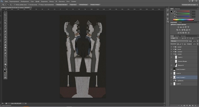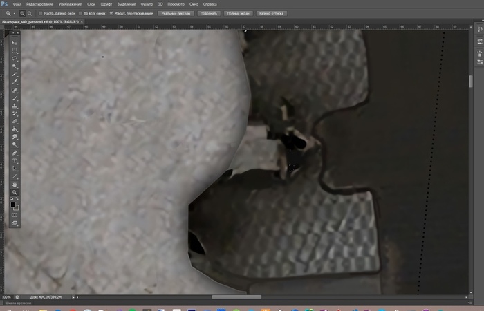 После чего используя кисти, штампы клонирующие и базовые примитивы наподобие линий я вычистил и перерисовал теккстуру для совпадения с нарисованным на ткани изображением.