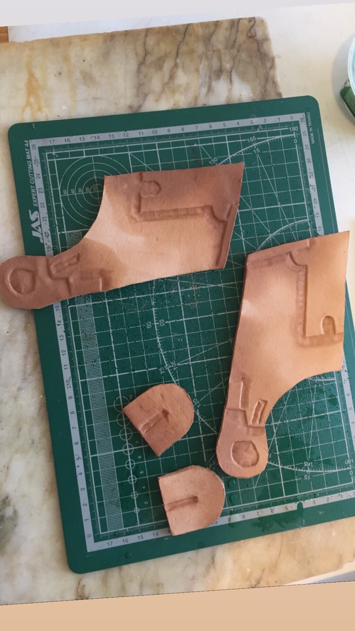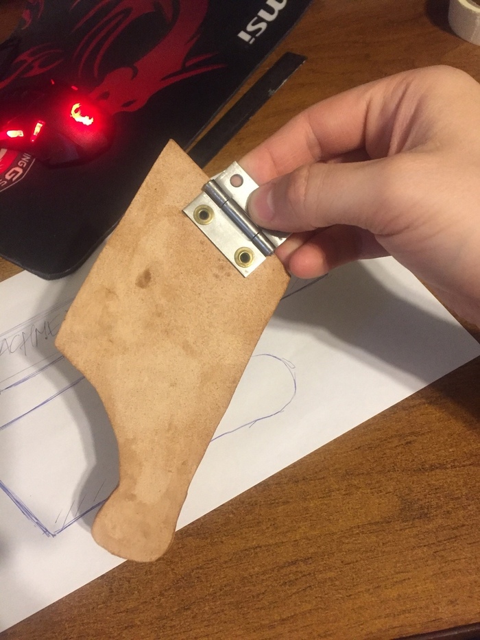 На основе изготовленных чертежей на первых этапах создания костюма я начал размещать на коже растительного дубления кусочки брони находящиеся на руках.