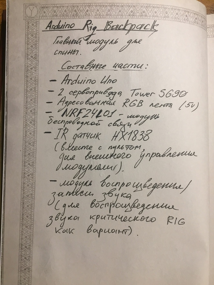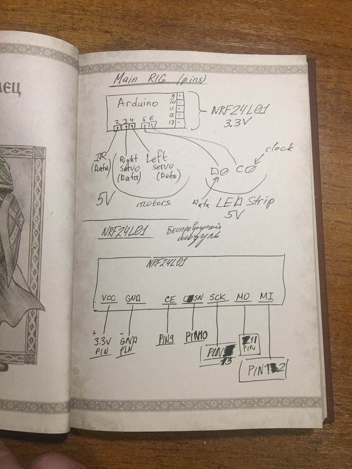Но как ещё один способ управления был выбран беспроводной модуль NRF2401 - которые позволяют осуществить двунаправленную коммуникацию для ноды вплоть до 8 устройств, что позволит управлять отдельными модулями на большем расстоянии и не зависеть от визуальных помех, а также синхронно выполнять действия для различных электронных блоков костюма – в частности объединять управление подсветкой шлема и спинного модуля, синхронизировать открыта забрала шлема и движения закрылок и так далее.