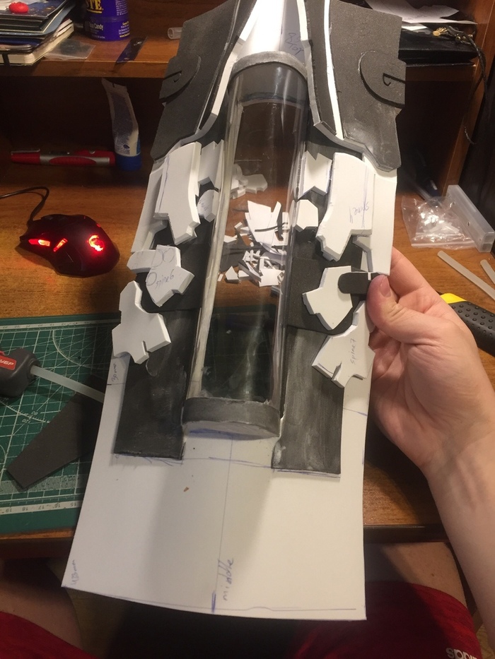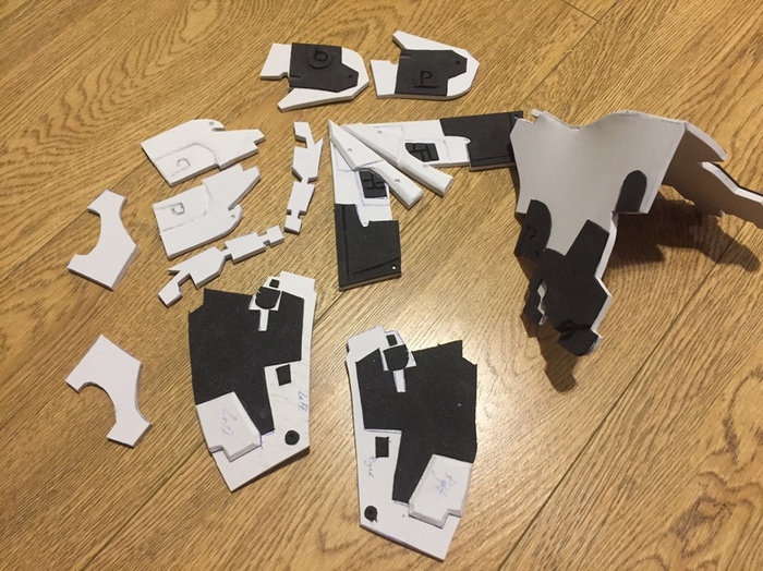 И остальные кусочки брони (с ними все примерно также - вырезаем части по разработанных шаблонам, склеиваем и прочее и прочее)