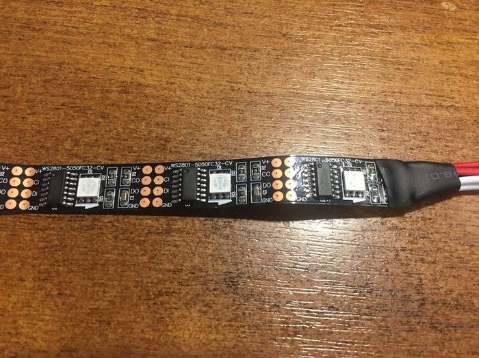 В качестве подсветки использовалась управляемая RGB светодиодная лента WS2801 - что позволяет программировать различные анимационные эффекты, включать нужные сегменты и прочее – что является идеальным аппаратным решением для реализации функционала присутствующего у персонажа в игре.