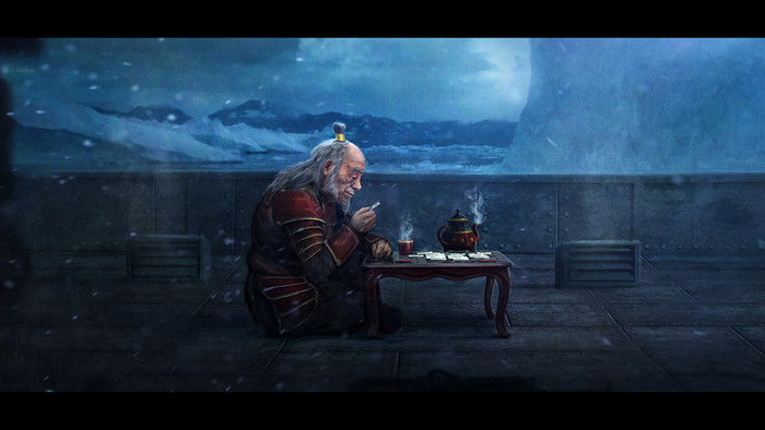 Аанг верхом на Вулу, рядом Эмолга изображает Момо