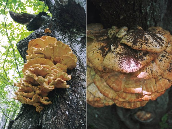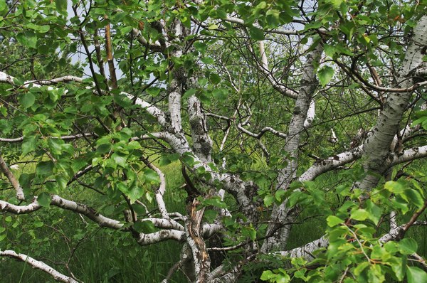 Погодка была все еще довольно пасмурная и ветреная, так что и на горе мы долго не задержались, посмотрели во все стороны света и стали спускаться к трассе. По дороге, правда, остановились перекусить остатками овощей в живописном месте с поросшими лишайником соснами и забавно изогнутыми березами.