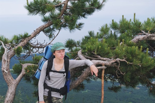 На карте выше вы можете увидеть весь наш маршрут, начиная от входа в Большой Каньон и заканчивая Охотничьим. Оттуда, не смотря на усталость, мы приняли предложение П. прогуляться по тропе вдоль обрыва до станции канатки, чтобы найти там какой-нибудь транспорт, который довезет нас до Симеиза. Пока гуляли, поймали интернет и нашли паблик по аренде жилья, дабы не бегать там по городу с рюкзаками, а приехать на все готовое. На подходе к станции я попрощалась со своим посохом, который служил мне честной опорой все эти долгие километры, и оставила его любоваться видами у живописной сосны. Маршрутку мы нашли довольно быстро, точнее она нас сама нашла в лице своего водилы, стоила она 300 ре с человека (вообще больше, но с татарами всегда же нужно поторговаться). И в ней уже я попрощалась (так вышло) со своей прекрасной шапулей, хотя и заметила это только на следующий день. Уже вторая моя шапка становится данью духам крымских странствий, но если за их благоволение требуется такая вот плата, то пусть так оно и будет.
