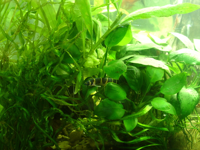 Эти малявки, как только я их запустил, активно стали по углам и дну шарить и искать еду. Крупные же акантофтальмусы меланхолично лежали и ждали время кормёжки. Не гоже барину за крошками плавать ))