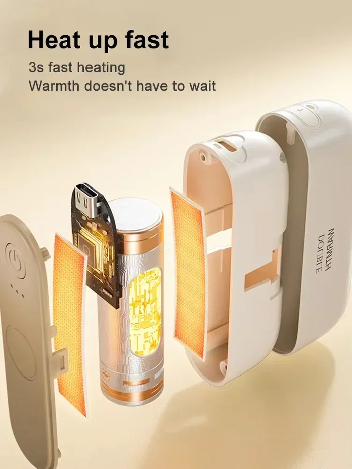Долгоиграющий аккумулятор: Единая грелка оснащена перезаряжаемым аккумулятором на 5000 мАч, способным проработать до 8 часов непрерывно. Или же можно воспользоваться ею как powerbank, заряжая телефон или другое устройство.