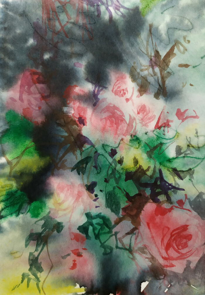 Но пока о хорошем:) Бумага очень любит воду, перед заливками ее лучше смачивать. Воду держит хорошо, и красочный слой тоже долго остается влажным. И от воды бумага не идет волнами, после высыхания лист идеально ровный. В технике «по-сырому» краска сильно растекается (для кого-то это плюс). Во влажном состоянии краску можно снять с бумаги почти до нуля: