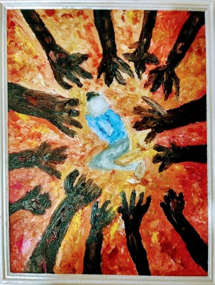 Есть 5 картин, которые нарисовал. Вот думаю какую бы отправить на местный конкурс? Друзья и знакомые говорят что это какая-то жуть и не по себе от них. Помогите выбрать, пожалуйста.