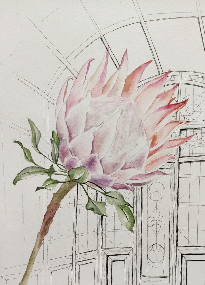 Одна из моих самых любимых серий "Оранжерея". Возможно это потому, что серия стала первооткрывателем в моих экспериментах по сочетанию акварели и графики.