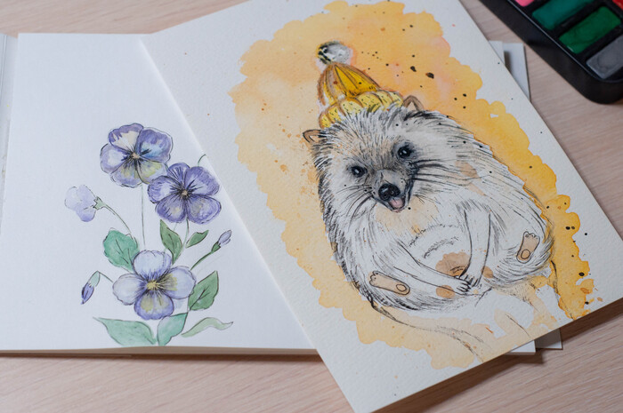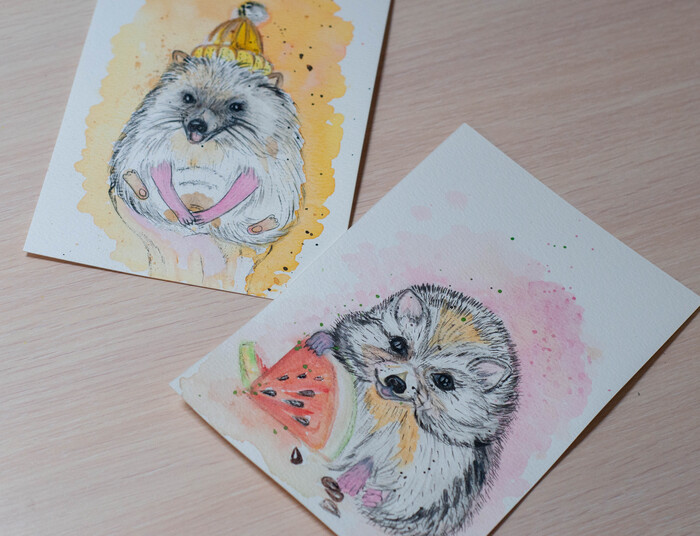 Новая акварель и вновь анималистика. По душе мне эти пухляши котики.