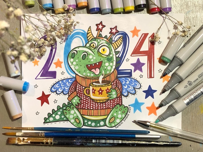 Всё было нарисовано в прошлом году. Хочу открыточки с некоторыми из этих картинок теперь напечатать)