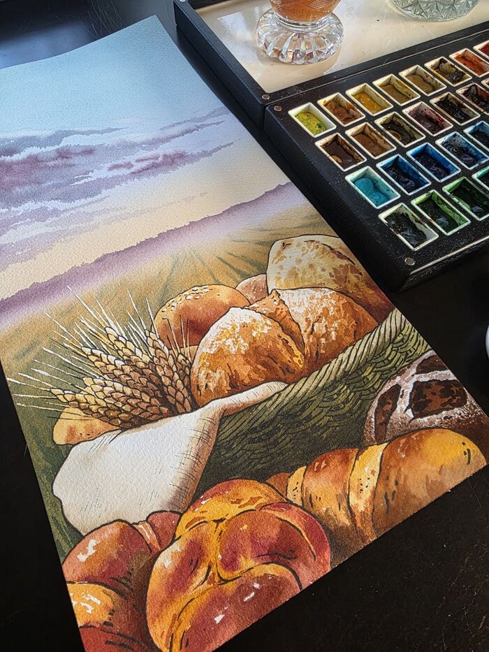 Рисую акварелью всякое. Показываю свои булочки без регистрации и смс