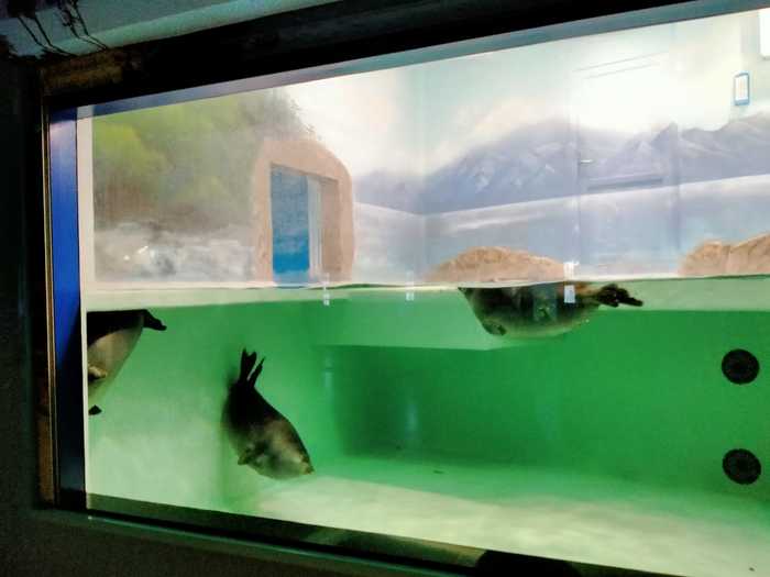 После аквариумов можно пройти к виртуальной части экспозиции, понаблюдать за трансляцией жизни тюленей на Ушканьих островах...