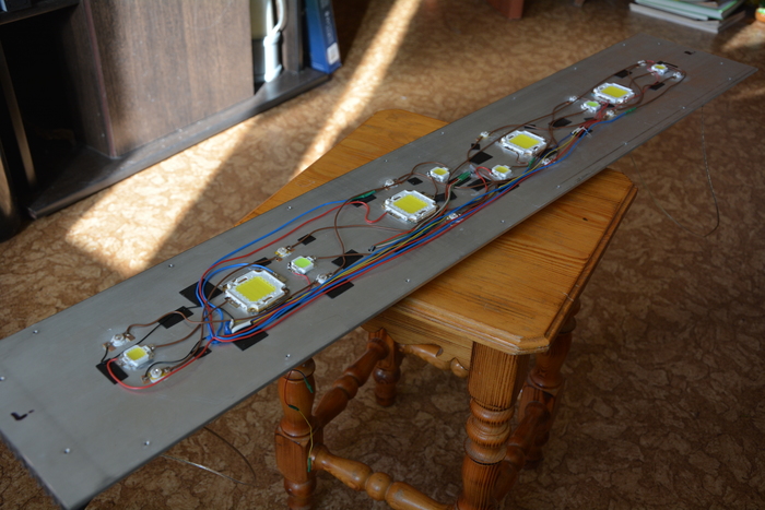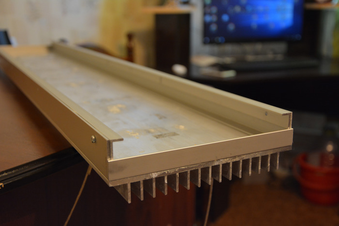 Драйвера переносим в нутрь светильника на радиатор. Сам радиатор обшиваем уголками и устанавливаем защитное стекло.