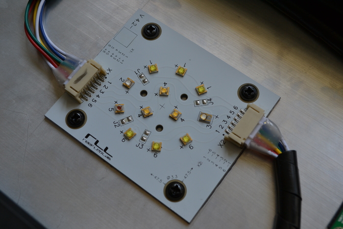 Светодиодные сборки несут на себе качественные диоды которые выдают до 180 люмен с потребляемого ватта электроэнергии. Плотную посадку светодиодов, которая позволяет добиться хорошего смешения спектра и 7 независимых каналов светодиодов.