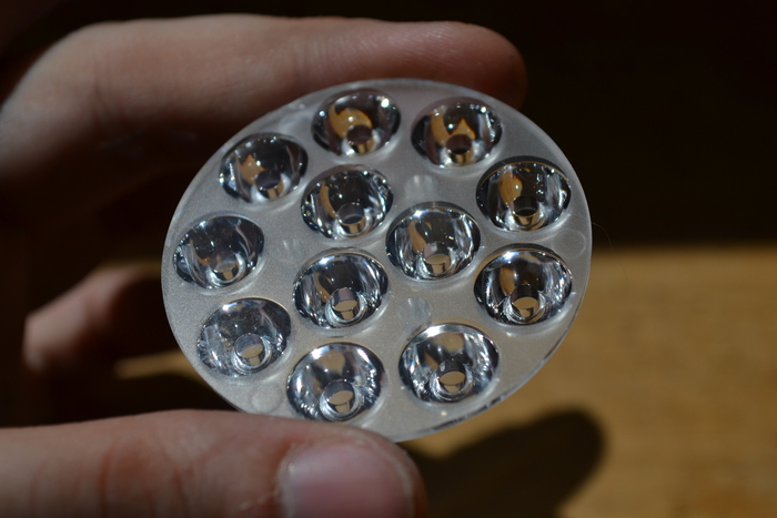 Далее идёт вторичная оптика с углом 60 градусов. Для возможности подвеса светильника на достаточной высоте.
