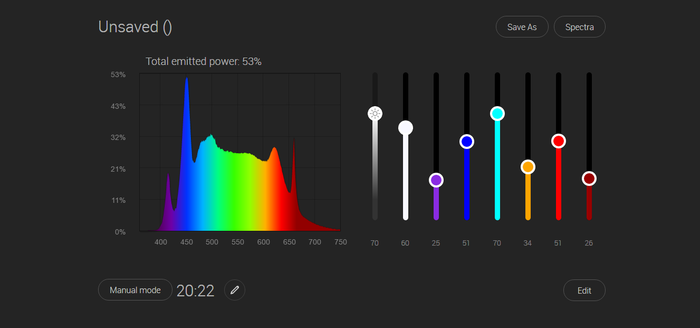 Контроллер теперь будет значительно более надёжный, промышленный Truespectrum. Также он перенесён в сам светильник. Теперь управлять им можно по wi-fi с любого смартфона или ноутбука, без дополнительного программного обеспечения через веб интерфейс. Можно задавать любую мощность света, спектры, плавные переходы от одного спектра к тугому. Плавные закаты и рассветы любой длительности.