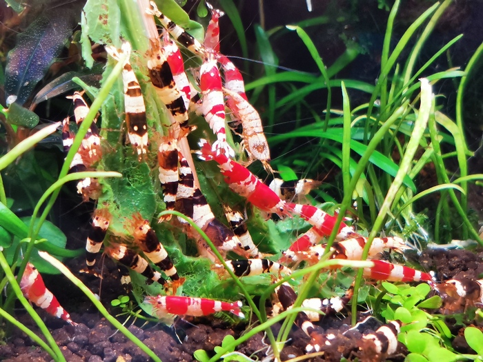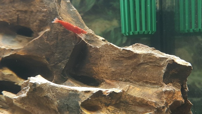 И еще одна радость: креветки начали плодиться! Одновременно удалось насчитать 3 мальков, одного даже сфотать (видимо вместе с мамашей :) )