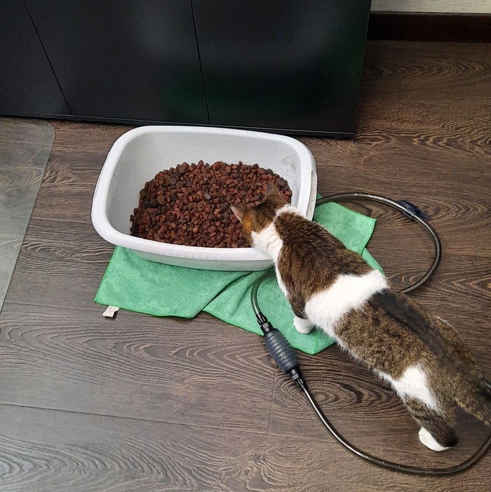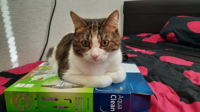 Кот внимательно наблюдал за данным действом и активно высказывал свое мнение, лёжа на коробке из-под сифона.