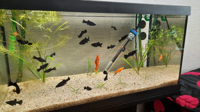 Кого хочется: Хочется черных/белых/желтых моллинезий и красных меченосцев (банально, но классные, нравятся), еще хотелось бы что-то такое, средненькое, чтобы не одна мелюзга плавала и чтобы мальков особо не жрало.