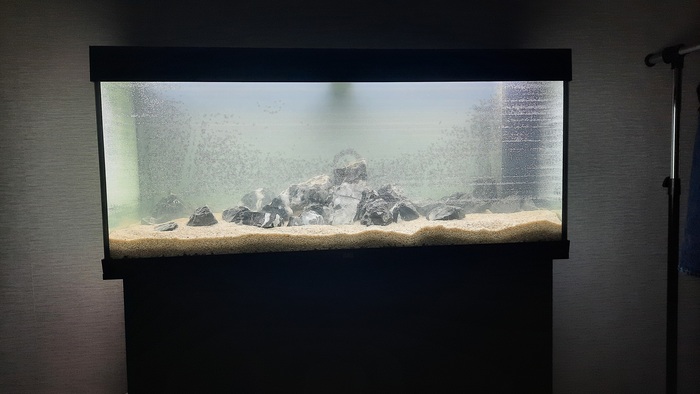 Ну и сейчас, после нескольких часов работы фильтра при свете люстры. Пузырьки еще не сошли.