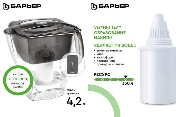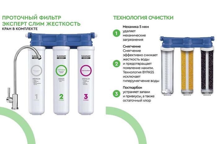 БАРЬЕР ЭКСПЕРТ Смягчение до 500 литров, от 1 мес (жесткая вода, 3 чел) до 6 мес (низкая жесткость, 1 чел) — 1 100 руб