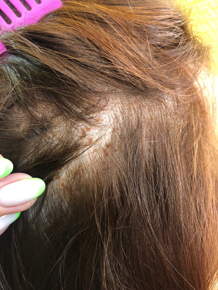 30 июня – появились какие-то красные пятна по всей голове, перхоть прошла самостоятельно.