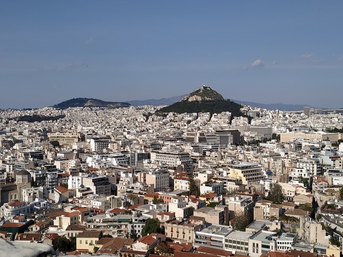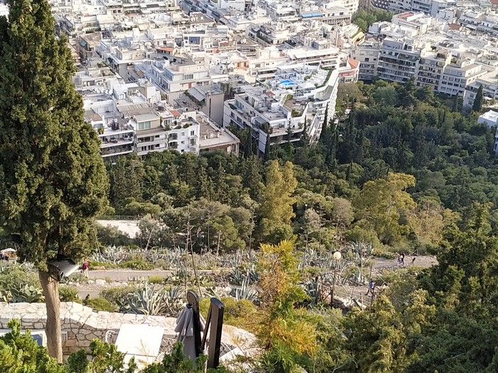 В Афинах мы уже второй раз, в этот раз решили приехать в конце апреля, когда тепло, но ещё не очень много туристов. В первый день мы приехали к обеду, поэтому много посмотреть не удалось и ограничились горой Ликавитос. Подняться на нее можно самостоятельно или на фуникулере. Мы поднимались на фуникулере, а спускались пешком, так как очень много красивых растений и видов было по пути. Вид с горы Ликавитос.