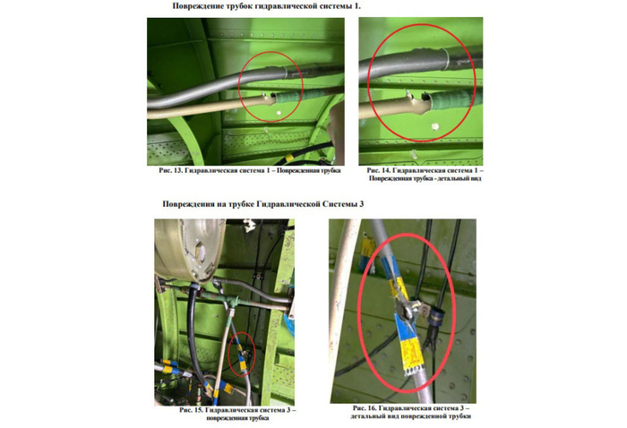 «Следствием данных повреждений будет потеря гидравлической жидкости/давления», - говорится в отчете."