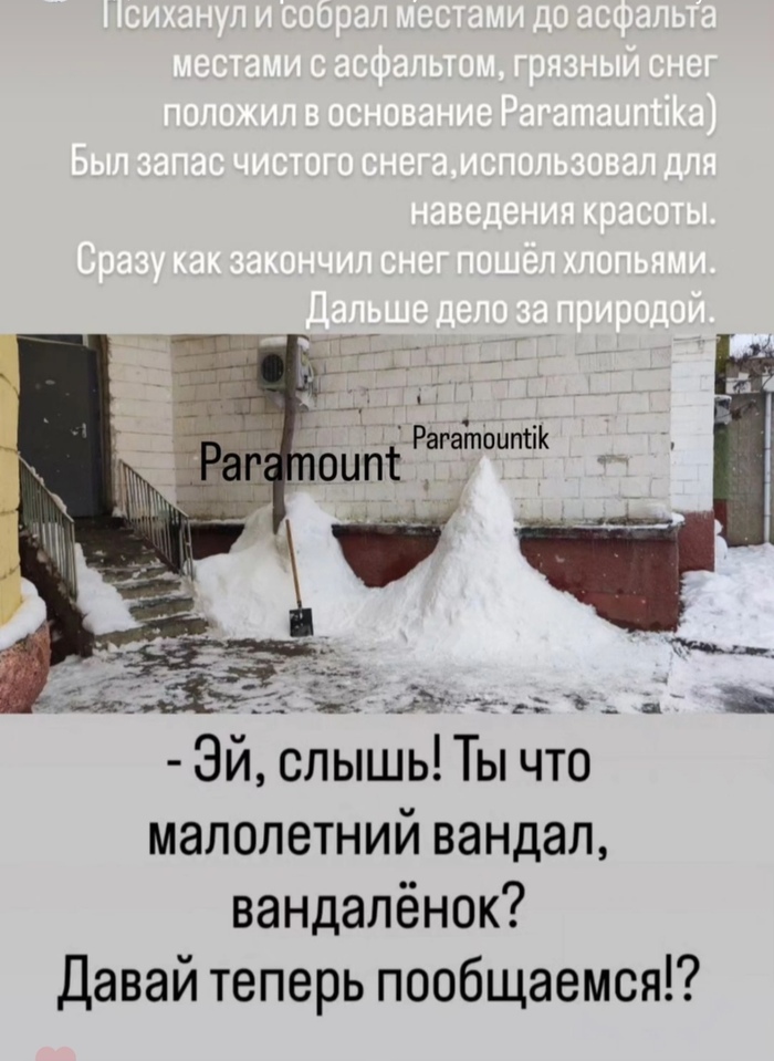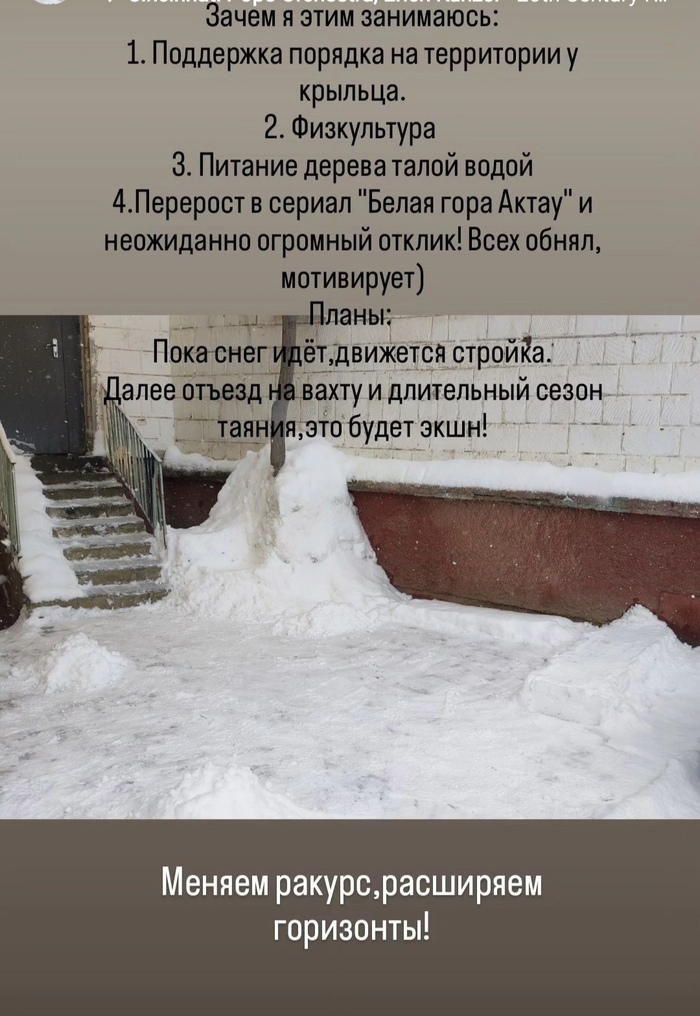 5-дней назад выпал снег,взял лопату почистил тропинку у крыльца, выложил в сторис инстаграм, получил неожиданно большой отклик своих знакомых,решил поделиться тут, думаю здесь найдется аудитория для такого контента. 5 фото,есть продолжение.
