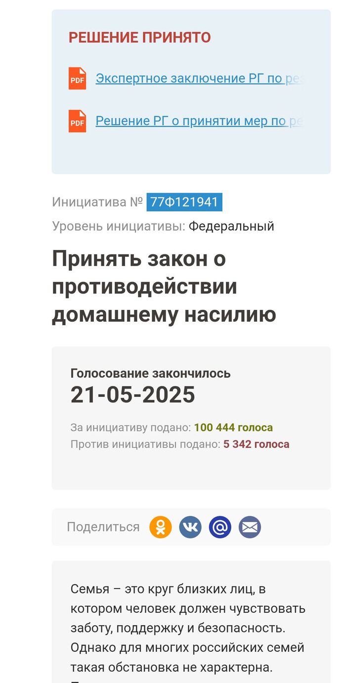 Не получили нужный результат и пошли дальше ныть, а вот недавно закончилось голосование против семейных конфликтов: