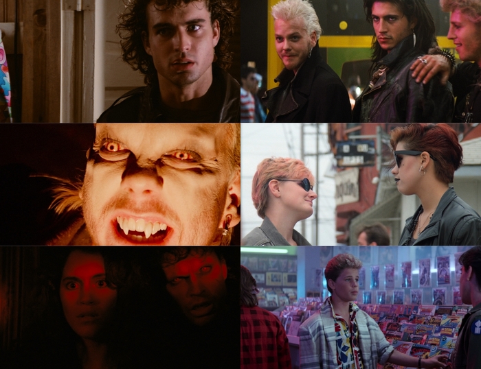 Сюжет (в фильме прилично героев)- Мать (Дайэнн Уист, которую многие знают по роли в "Эдвард руки-ножницы","Десятое королевство") с двумя сыновьями (Майкл и Сэм - Джейсон Патрик, Кори Хэйм) перебирается к своему отцу (Барнард Хьюз) в маленький город. Сэм, тусуется в магазинчике комиксов, встречает двух братьев балбесов (Кори Фельдман и Джемисон Ньюлэндер - Эдгар Фрог и Алан Фрог). Братья Фрог рекомендуют ему взять комикс про вампиров (который пригодится по итогу).