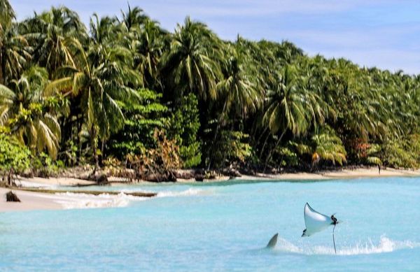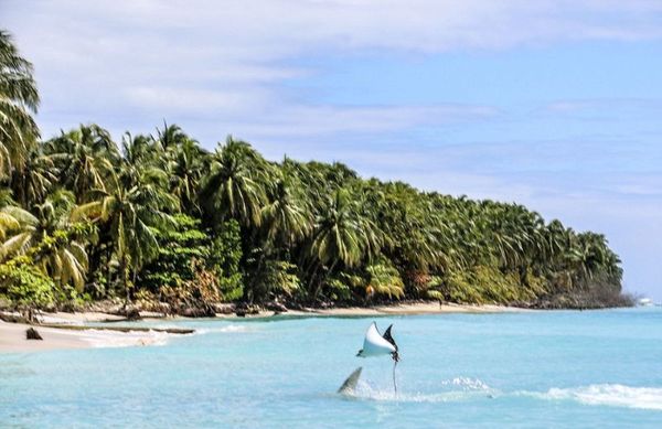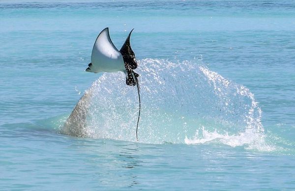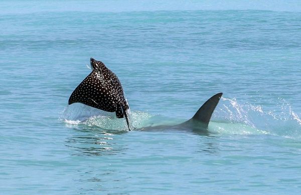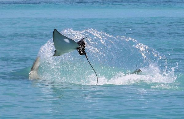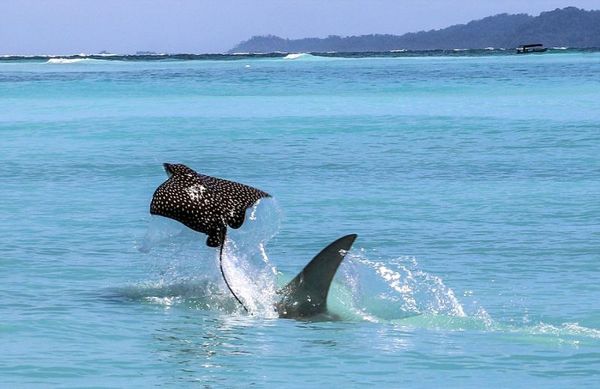 Скат улетел от напавшей на него акулы-молота,но обещал вернуться)