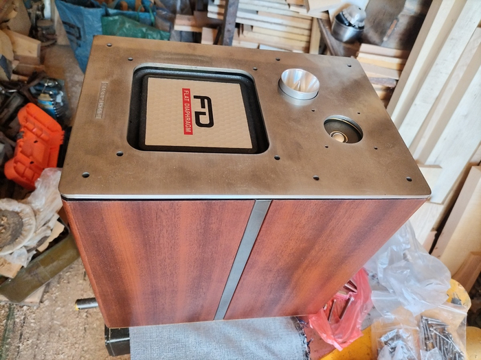 Сейчас Сергей делает колонки под этот аппарат. Чтобы всё было в одном стиле, переднюю панель сделал из нержавейки.