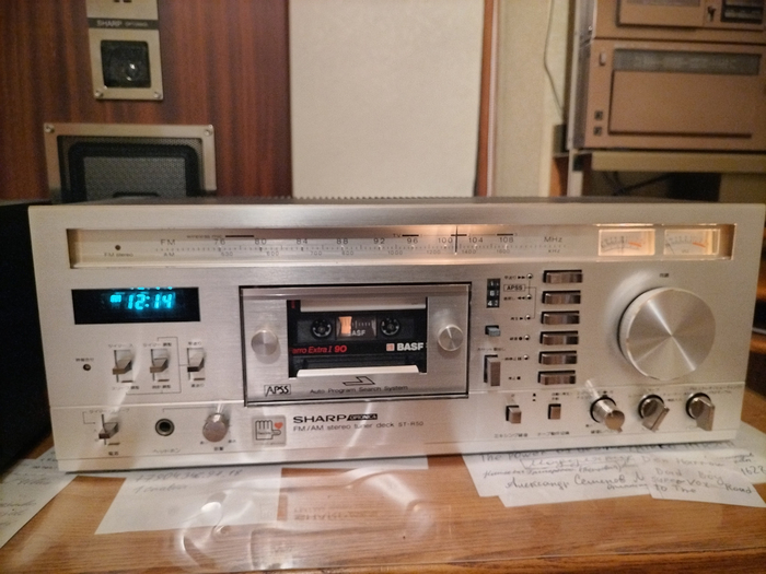 Не пропадать же добру-Сергей решил использовать колонки от этой магнитолы. По случаю был куплен не менее шикарный аппарат Sharp Optonica 79 года.