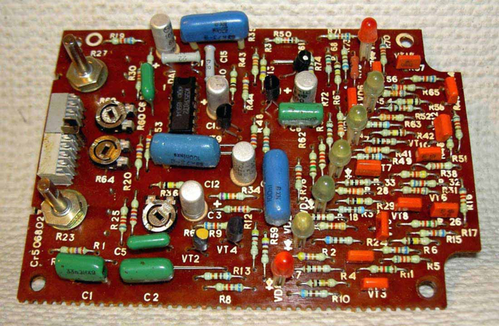 Особенностью конструкции является наличие активного ФНЧ третьего порядка с частотой среза 250 Гц на микросхеме DA1, обрабатывающего сигнал с датчика ЭМОС. Защитная система на транзисторной базе предотвращает появление щелчков при включении и отключает аппарат при возникновении постоянного напряжения на выходе.