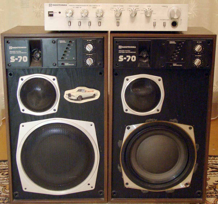 Акустическое оформление «S-70» базируется на трёх динамических головках производства объединения «Радиотехника»: