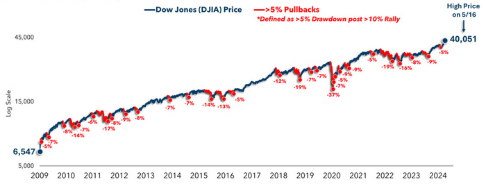 С 2009 по DJ было всего 30 падений индекса на 5% и более: