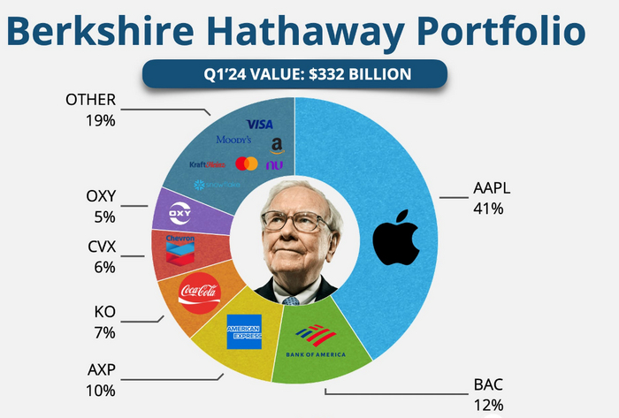 Это как раз наш самый любимый активный управляющий - Баффет. И его текущий портфель (1 кв.24).