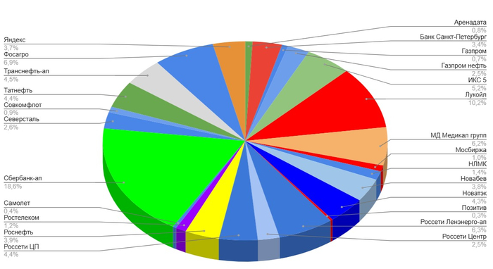 3) Фонд "Крупнейшие компании РФ" (TMOS) в сумме 122 тыс руб. Поступающие дивиденды автоматически реинвестируются обратно в фонд.