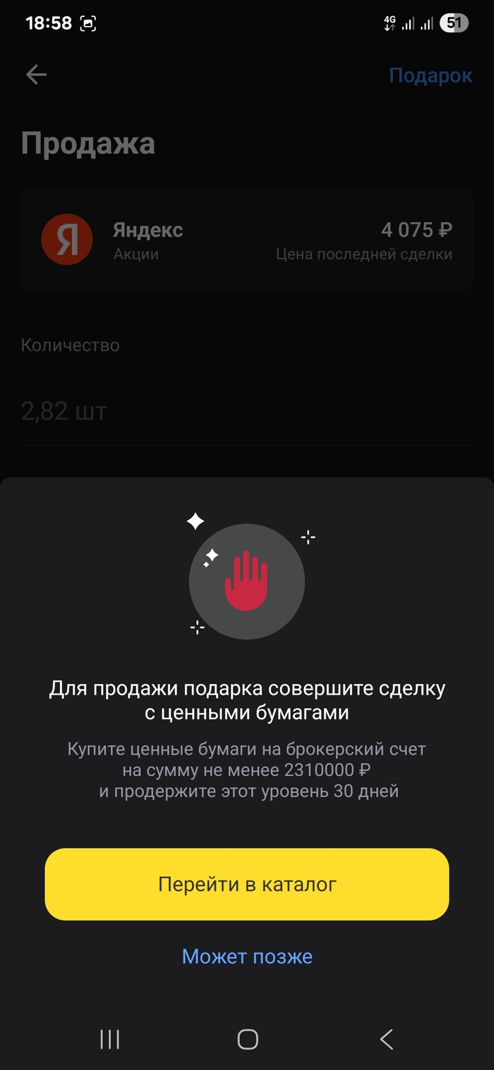 Я должен купить акций на 2.3 мульта чтоб получить 12 тыс. В связи с чем у меня есть несколько вопросов. 1. Вы там совсем конченные? 2. Нахера мне видеть в балансе ваш "подарок"?