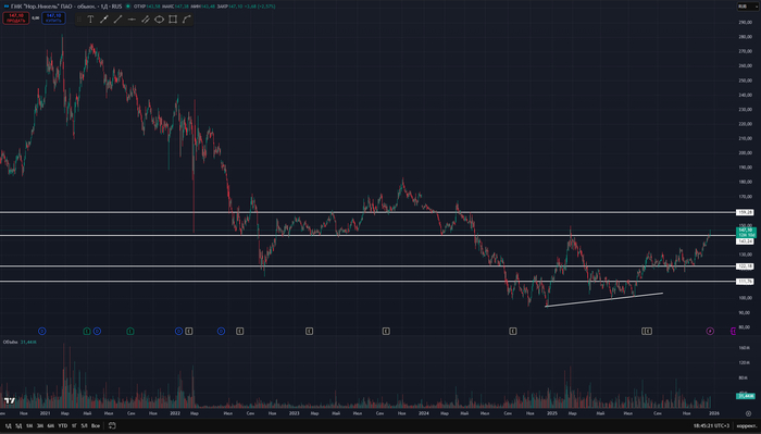 Пытаться запрыгнуть во фьючерсы по данным металлам, на мой взгляд, уже поздно, ввиду текущего психоза, а вот в акции Норильского никеля может быть интересно ввиду того, что на котировки компании, как и на Индекс Мосбиржи, давит геополитика и высокая ставка ЦБ и есть еще куда разгуляться.