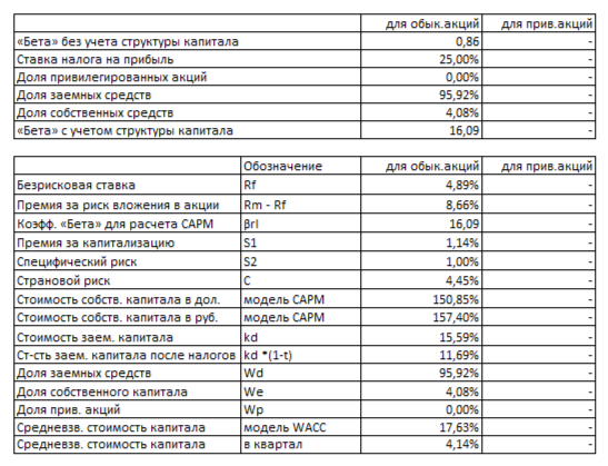 Поскольку у Аэрофлота нет привилегированных акций, расчет для них нам не нужен.