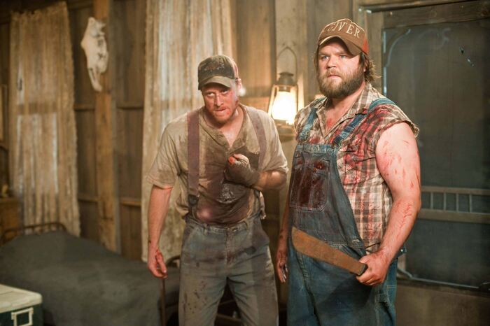 Сюжет - Группа студентов отправляется за город, чтобы вовсю оторваться на выходных: попить пивка, поплавать в озере и подышать чистым воздухом. Но в первый же день они сталкиваются с неотёсанными фермерами Такером и Дейлом, которые тоже решили как следует оттянуться на природе. Приняв этих на вид диковатых, но, в сущности, безобидных ребят за злобных местных маньяков, горожане решают дать деревенщине жёсткий отпор.