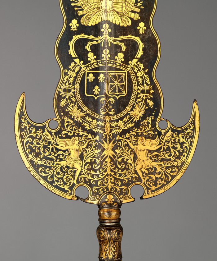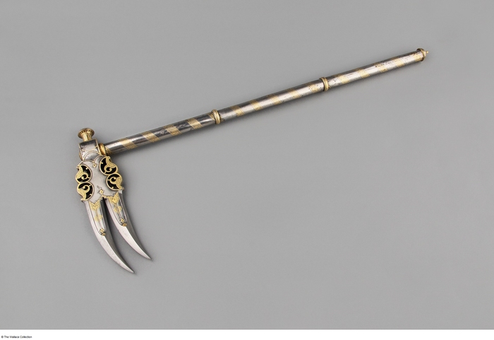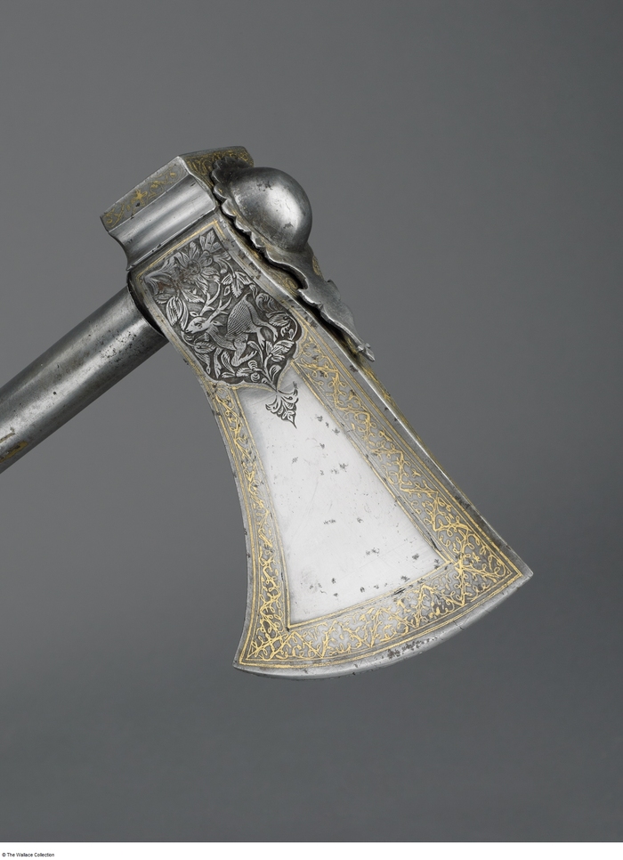 Боевой топор кардинала Ипполито Медичи, создан около 1530-35 гг., Италия. Материал: сталь, золото, дерево. Размеры: Длина (78,1 см); Длина (13,3 см); Вес (1134 г).