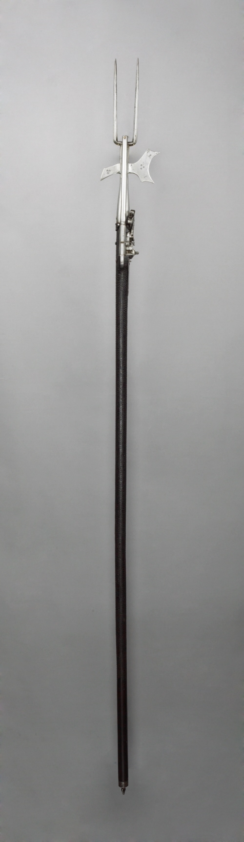 Вундервафля Коминированное оружие: алебарда, колесцовый пистолет. Германия, около 1580 года. Материал: сталь, медный сплав и дерево. Длина:215 см, длина ствола пистолета 32,2 см, калибр 10мм, вес: 2,792 кг. Этот вид комбинированного оружия обычно использовался исключительно для охоты.